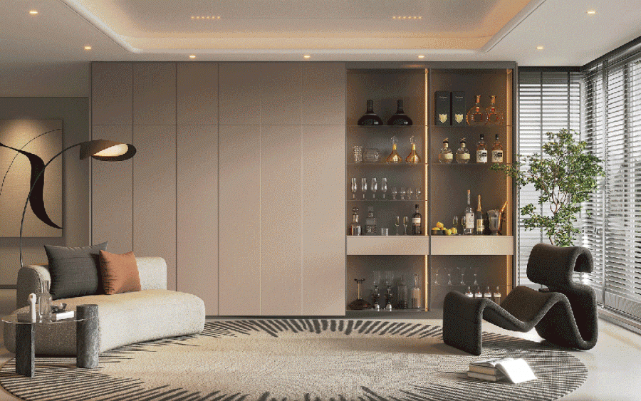 友邦筑家百變柜在整體結構的穩固性與產品細節體驗上也精益求精。柜體和墻面鋁材連接,門板鉸鏈與立柱連接,層板整條鋁合金連接,長久使用依然牢固安全。柜體與墻地無縫銜接,配合門板密封防塵條,有效阻隔灰塵侵入。內置線燈,開門即亮,光線柔和均勻照亮收納區,取物一目了然。